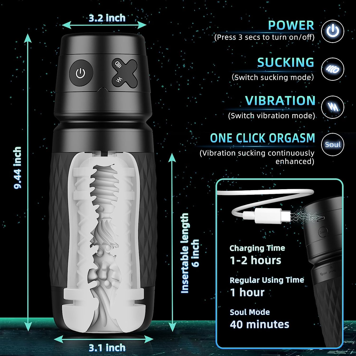 - 【Automatic Male Masturbator with 8 Vibration and Suction Modes】The Male Masturbators Cup is a automatic sex toy that features a vacuum suction pump. Unlike traditional male masturbators that simply mechanically repeat insertion to stimulate your penis without mimicking a realistic sensation, this one combines vibration and suction to tightly envelop your penis with each contraction and expansion, creating a satisfying sensory experience. The included lubricant is a great bonus for this sex toy.